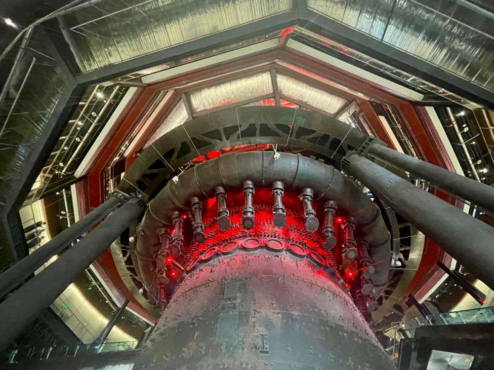 更絕妙的是,四高爐巨大的爐芯得以保留。伴著紅色燈光照映,爐火仿佛再次升騰而起。年輕人感覺(jué)到“賽博朋克”,年長(zhǎng)者聯(lián)想到“鐵色記憶”,專業(yè)人士看到了“城市更新”。這是高爐生命的最好延續(xù)。