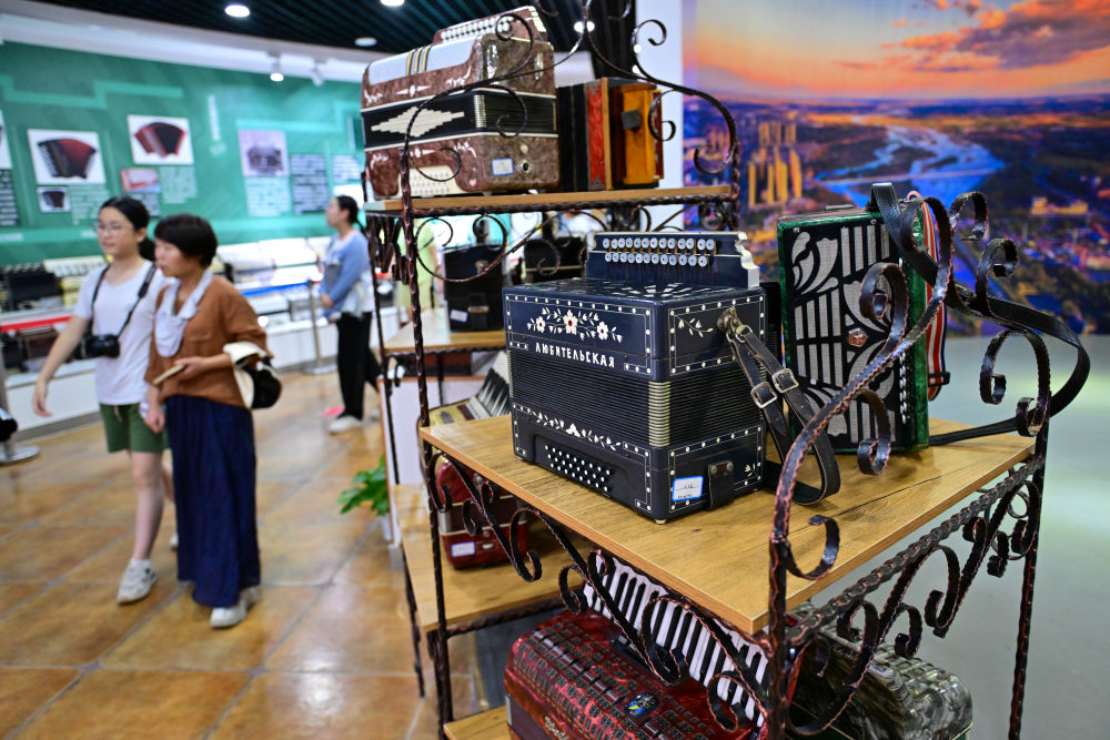 音樂舞蹈之所以在這里深受喜愛,與多民族文化在此深度交流交融密不可分。六星街上有一座亞歷山大手風(fēng)琴珍藏館,800多架來自俄羅斯、意大利、德國、捷克等國的精品手風(fēng)琴在此靜靜陳列,其中不乏手風(fēng)琴中的“古董”珍品。這些手風(fēng)琴的主人亞歷山大·謝爾蓋維奇·扎祖林是國家級非物質(zhì)文化遺產(chǎn)——俄羅斯族“巴揚(yáng)(鍵鈕式手風(fēng)琴)藝術(shù)”非遺傳承人?!坝们俾曌層慰透惺艿搅墙值拿利愊楹褪俏业男脑浮!眮啔v山大說。