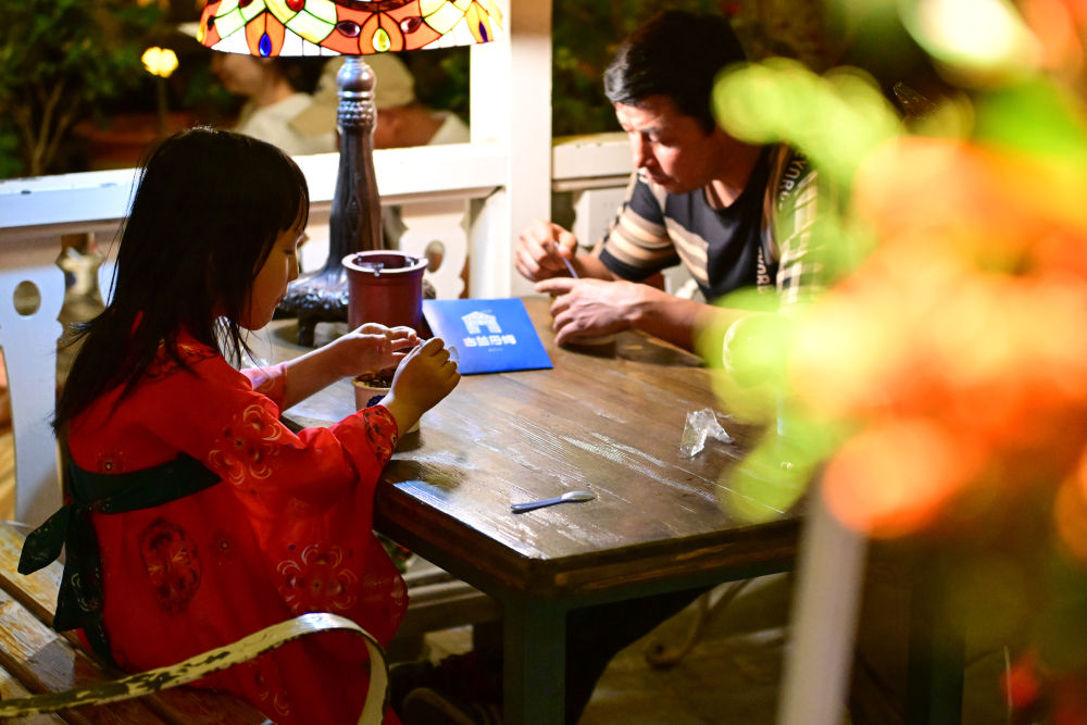 在新疆伊犁哈薩克自治州伊寧市六星街,游客品嘗手工冰淇淋。新華社記者 丁磊 攝