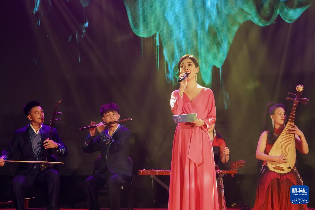 9月16日,在斯里蘭卡首都科倫坡,演員在“天涯共此時(shí)-中秋詩(shī)會(huì)”活動(dòng)上表演。新華社記者 伍岳 攝