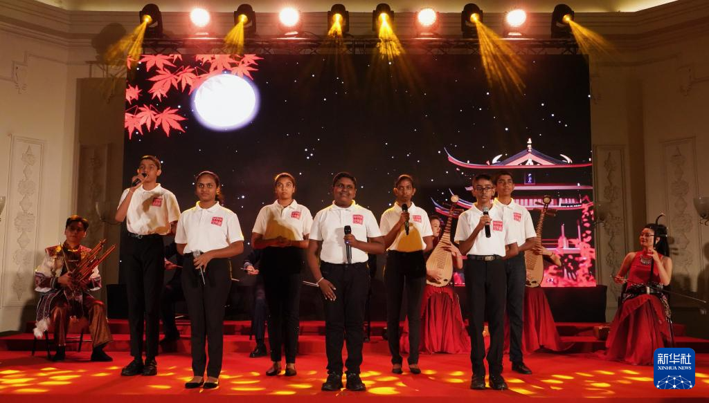 9月16日,在斯里蘭卡首都科倫坡,斯里蘭卡中學(xué)生在“天涯共此時(shí)-中秋詩(shī)會(huì)”活動(dòng)上表演。新華社記者 伍岳 攝