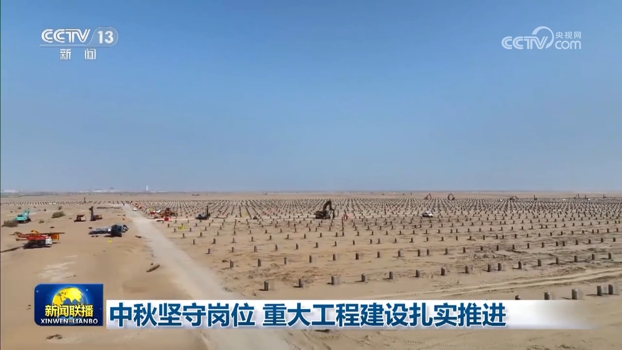 這個(gè)中秋假期,在塔克拉瑪干沙漠腹地,上千名施工人員沒有休息,加快建設(shè)萬畝光伏治沙項(xiàng)目,他們將用光伏板鋪滿3285個(gè)足球場(chǎng)大小的沙丘,年底建成后,將為周邊化工產(chǎn)業(yè)群提供每年21億度的清潔電能。