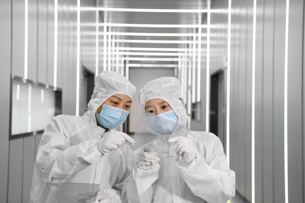 2月21日,在位于安徽合肥的東超科技工廠,技術(shù)人員在檢查負折射平板透鏡原材料的品質(zhì)。新華社記者 張端 攝