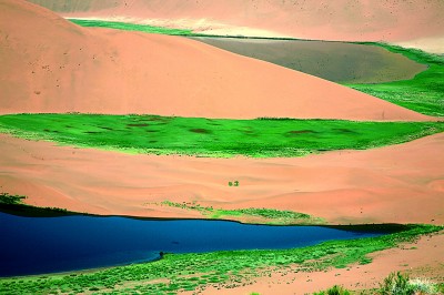 巴丹吉林沙漠里的綠色植被。哈斯巴根攝