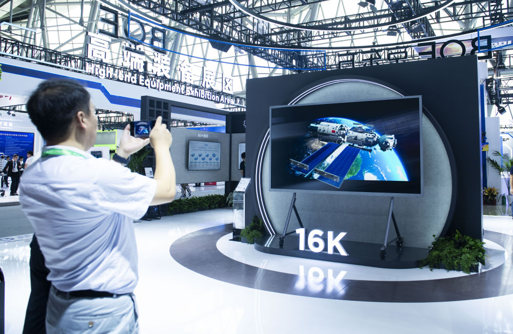 9月20日,觀眾在2024世界制造業(yè)大會(huì)展館內(nèi)了解16K裸眼3D屏幕。新華社記者 傅天 攝