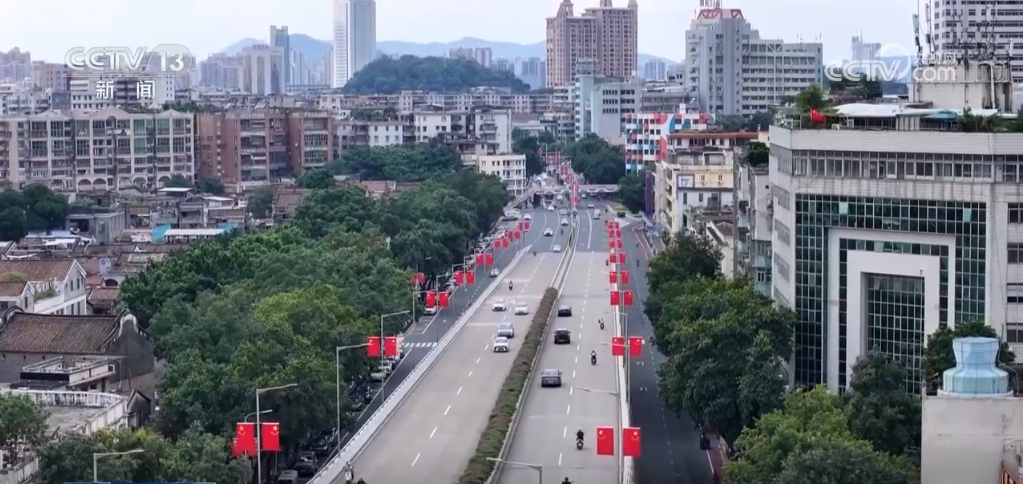 在廣東深圳,公園、廣場(chǎng)、街道上,處處可以看到五星紅旗迎風(fēng)飄揚(yáng)。紅旗與藍(lán)天、綠樹(shù)、高樓交相輝映,為城市增添了濃濃的節(jié)日氛圍。