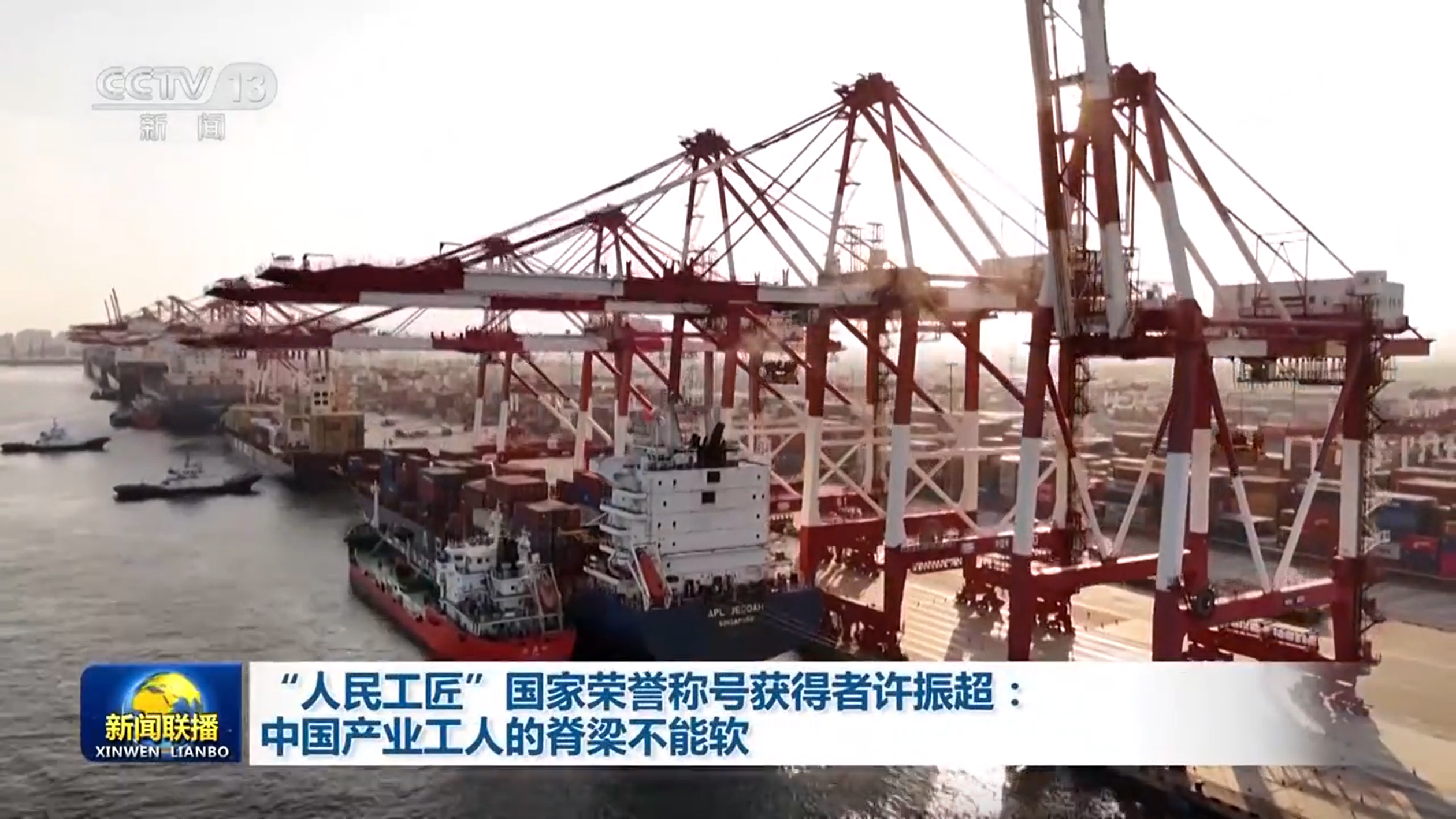 央視網(wǎng)消息(新聞聯(lián)播):他帶領(lǐng)團(tuán)隊(duì)九次打破集裝箱裝卸的世界紀(jì)錄,開創(chuàng)了全國聞名的“振超效率”,他就是“人民工匠”國家榮譽(yù)稱號(hào)獲得者許振超。