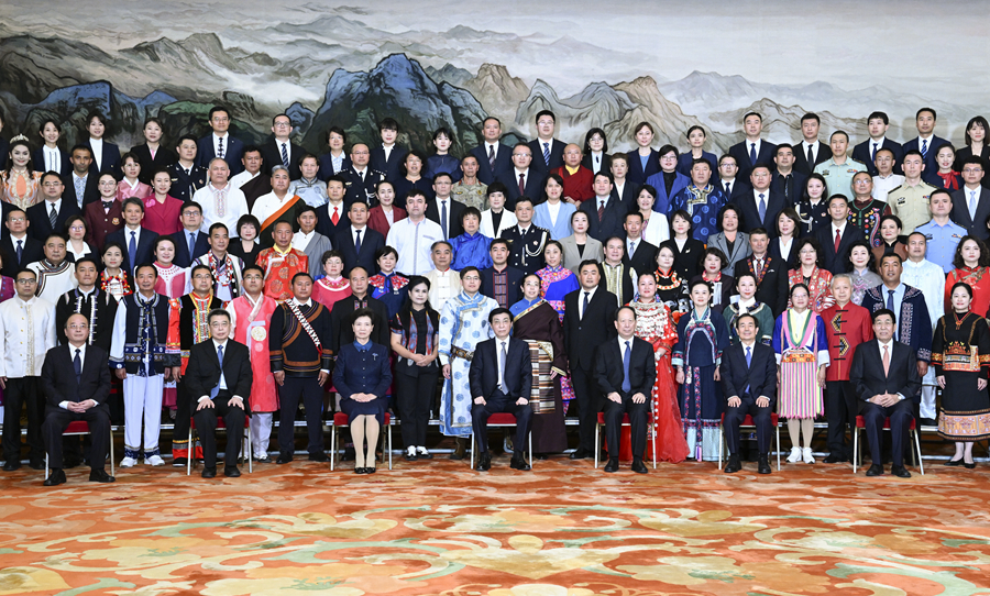 9月29日,中共中央政治局常委、全國政協(xié)主席王滬寧在北京會見全國少數(shù)民族參觀團。新華社記者 張領(lǐng) 攝