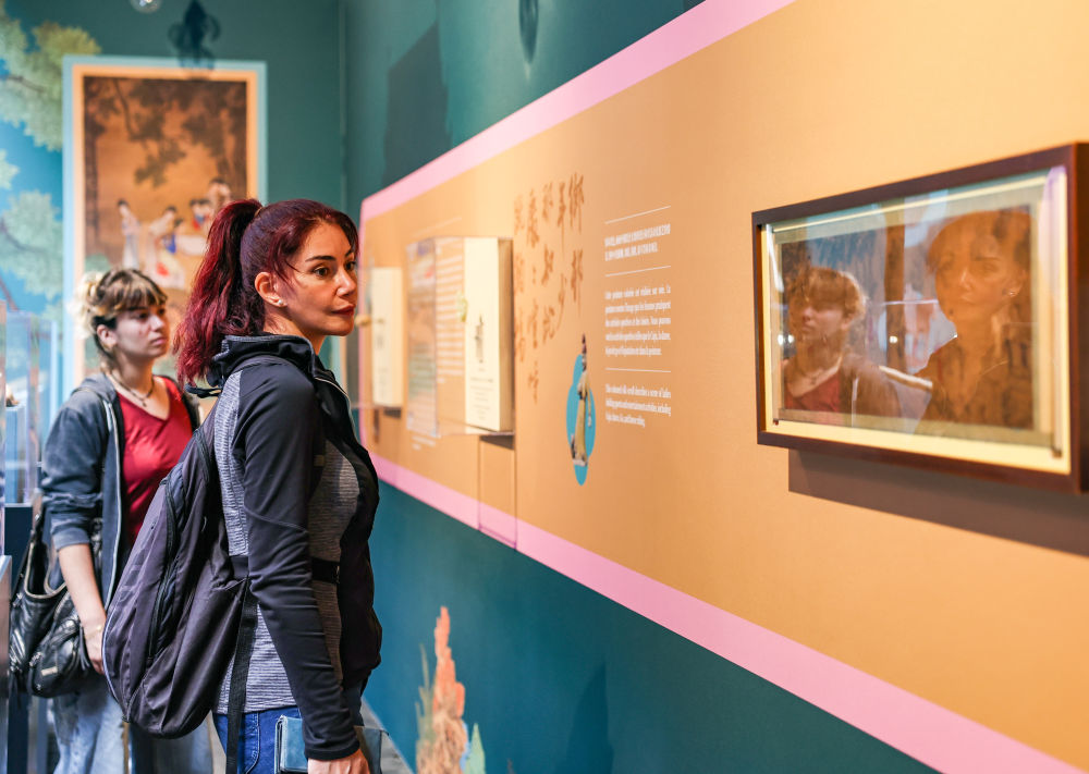 7月23日,觀眾在開幕式上參觀。當(dāng)日,“龍馬風(fēng)度 體育精神——中華體育文化展”在法國巴黎巴士底設(shè)計(jì)中心開幕。新華社記者 張帆 攝