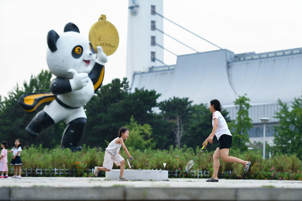 2023年8月20日,市民在位于北京的國家奧林匹克體育中心小廣場(chǎng)上打羽毛球。國家奧林匹克體育中心是我國第一個(gè)承辦大型綜合性國際體育賽事的體育場(chǎng)館群,為1990年北京亞運(yùn)會(huì)而建。新華社記者 陳鐘昊 攝