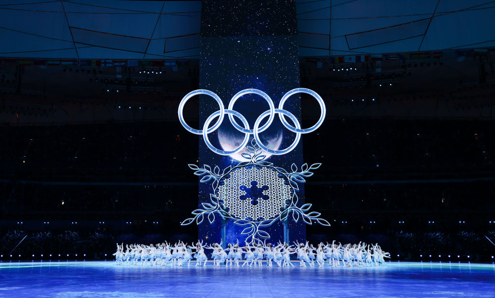 這是2022年2月4日晚在北京國家體育場(chǎng)舉行的第二十四屆冬季奧林匹克運(yùn)動(dòng)會(huì)開幕式上的“構(gòu)建一朵雪花”環(huán)節(jié)。新華社記者 曹燦 攝