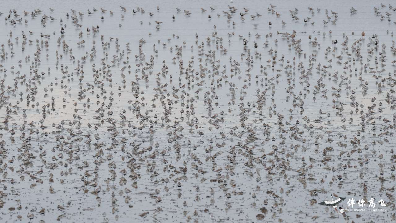 其中,丹東鴨綠江口候鳥(niǎo)棲息地位于東亞-澳大利西亞候鳥(niǎo)遷飛通道北部,提名地內(nèi)充沛的底棲動(dòng)物和各種漁業(yè)資源,每年為二十萬(wàn)到四十萬(wàn)只候鳥(niǎo)提供了關(guān)鍵的能量補(bǔ)給來(lái)源,是重要的候鳥(niǎo)停歇地和補(bǔ)給站之一。圖為在灘涂覓食的大批鸻鷸。(徐譚 攝/光明圖片)