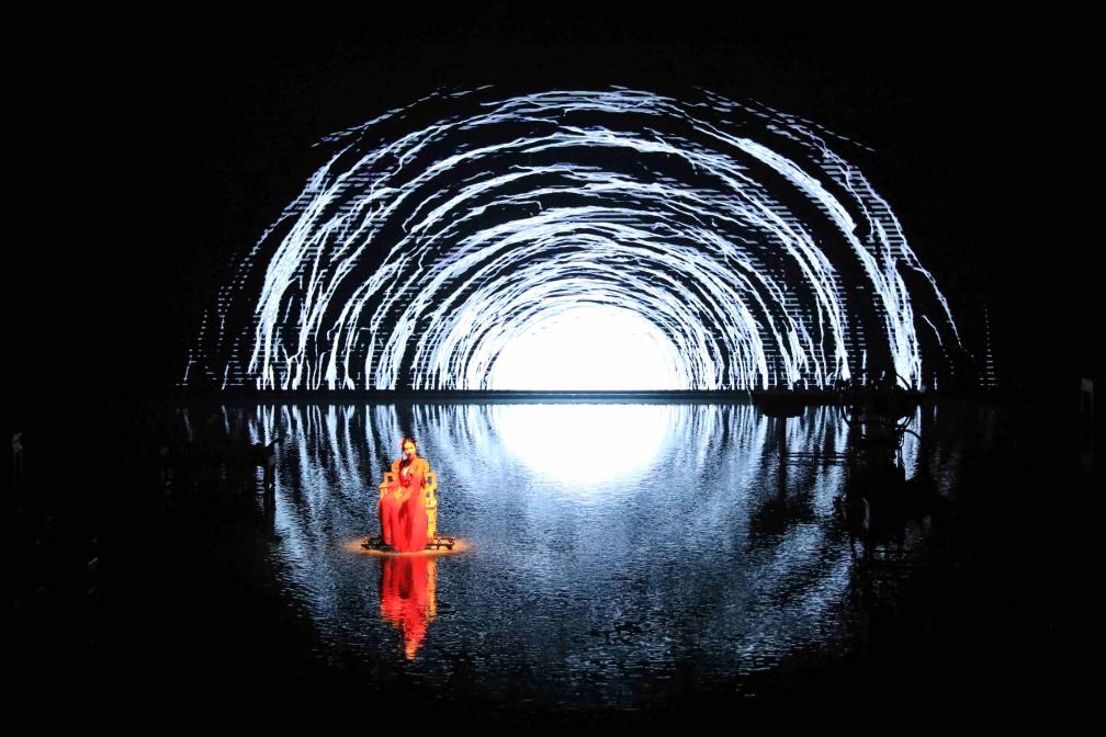 36扇高大的雕花木門輕啟,演員曼妙起舞;舞臺上光影變幻,不時(shí)落下層層水簾……“太震撼了!”觀眾們不約而同發(fā)出感嘆。
