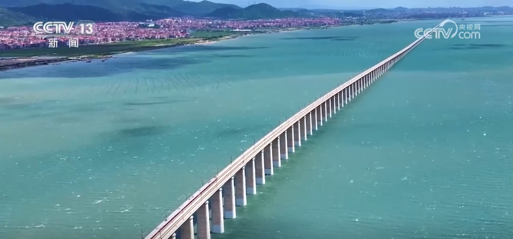 這是我國首條設(shè)計(jì)時(shí)速350公里的跨海高鐵——福廈高鐵湄洲灣跨海大橋。碧波之上,大橋氣勢(shì)恢宏,連接兩岸。在跨海大橋上行車,受海上風(fēng)力影響很大,通過這樣的路段通常需要減速慢行。但福廈高鐵實(shí)現(xiàn)了“跨海過橋不減速”,在不設(shè)風(fēng)屏障等防風(fēng)措施下,列車可在8級(jí)大風(fēng)下以時(shí)速350公里速度行駛。國慶假期,福廈高鐵加開195趟列車,滿足旅客出行需求。