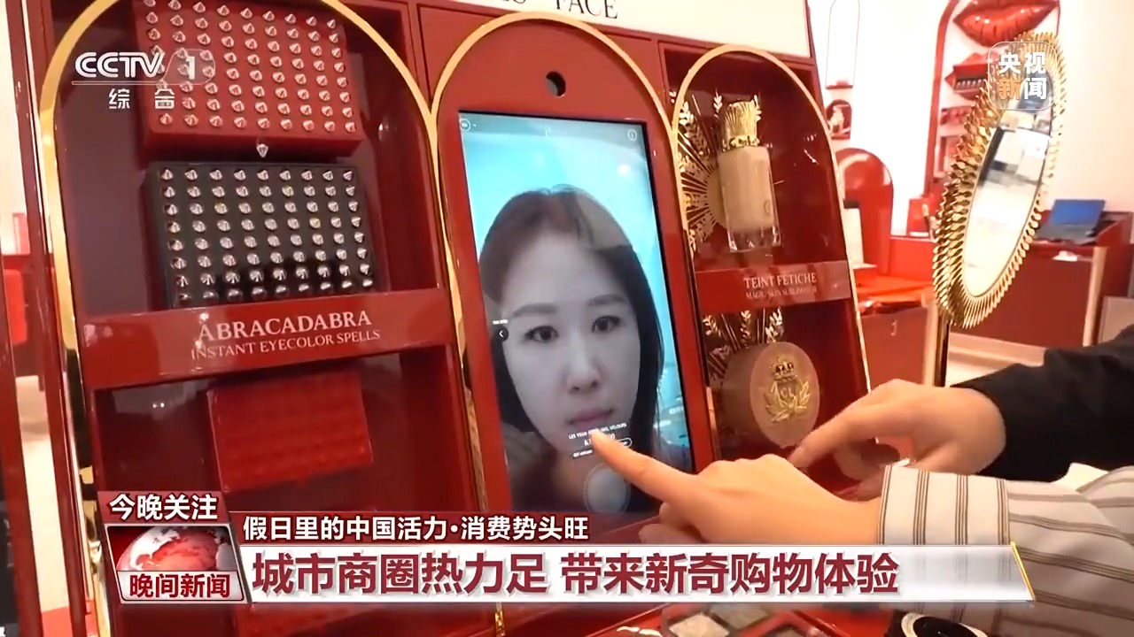在四川成都,一家大型商場的裸眼3D大屏換上了國慶新裝,身臨其境的原始森林、被滿天繁星包裹,吸引了許多游客前來打卡。現(xiàn)場更有虛擬試妝、虛擬試鞋、智能導購等等前沿科技帶來的新奇購物體驗。