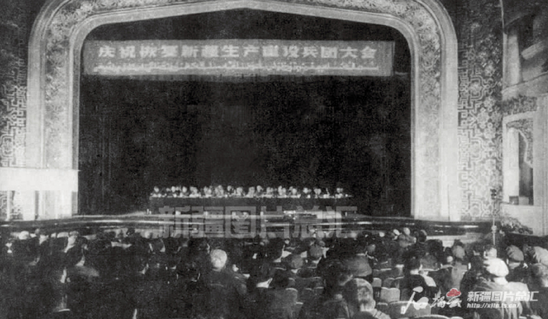 1982年6月1日,慶祝恢復(fù)新疆生產(chǎn)建設(shè)兵團(tuán)大會在烏魯木齊舉行。新疆圖片總匯資料圖片