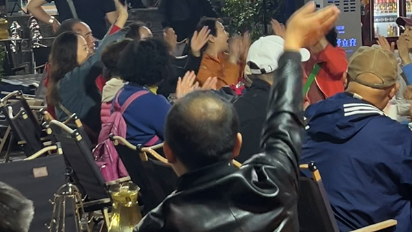 六星街的“蘋(píng)果香”餐廳更是成為眾多游客的打卡點(diǎn),他們?cè)谄穱L新疆美食的同時(shí),也跟著齊聲合唱被稱為“六星街成名曲”的《蘋(píng)果香》。