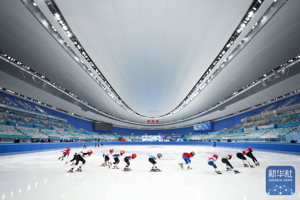 2023年1月6日,小朋友們在國家速滑館進(jìn)行短道速滑訓(xùn)練展示。新華社記者 鞠煥宗攝