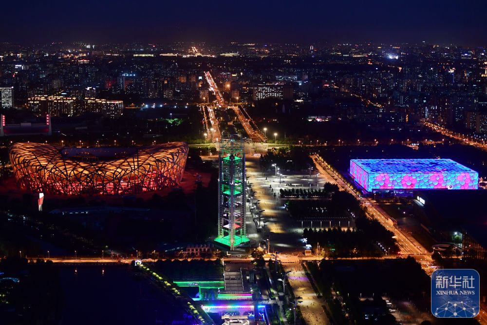 這是2022年6月23日拍攝的國家體育場(左)與國家游泳中心夜景。作為“雙奧之城”的標(biāo)志性場館群“冰絲帶”、“鳥巢”、“冰立方”聯(lián)動亮燈,共同傳遞奧林匹克精神,號召民眾用運動點亮健康生活,創(chuàng)造美好未來。 新華社記者 張晨霖 攝