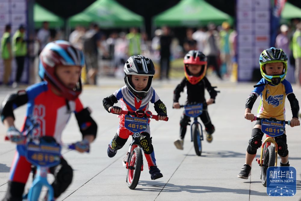 2024年6月22日小選手寒博赟(左二)在比賽中騎行。當(dāng)日,2024甘肅省兒童平衡車童車聯(lián)賽在甘肅省蘭州市甘肅大劇院廣場開賽。新華社記者 陳斌 攝