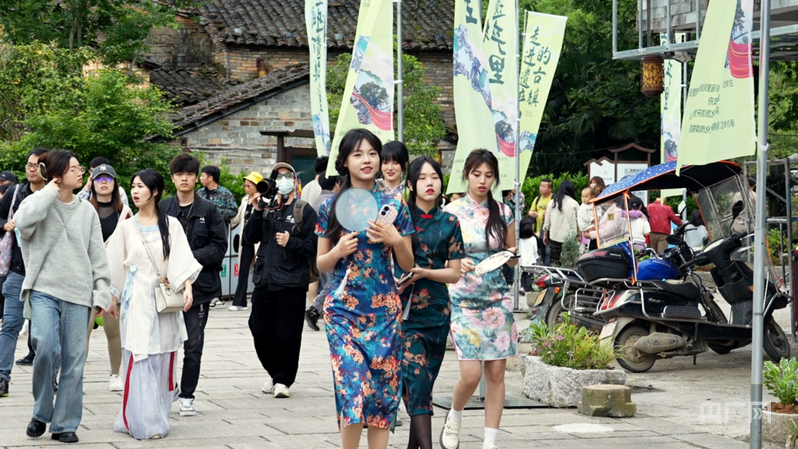 放眼古鎮(zhèn),隨處可見游客著一身旗袍或者漢服在古鎮(zhèn)之中游玩拍照,在古建筑群中穿梭游走。沿路攤位琳瑯滿目的陶瓷文創(chuàng)產(chǎn)品、瑤河中古色古香的花船表演、非遺傳承人現(xiàn)場(chǎng)表演……層出不窮的古鎮(zhèn)文化引得游客們紛紛駐足觀看,在古鎮(zhèn)體驗(yàn)一半煙火一半詩意。