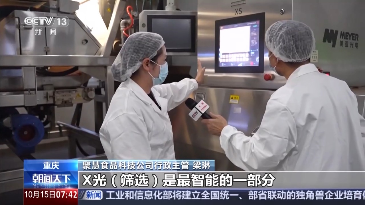 重慶聚慧食品科技公司行政主管 梁琳:X光篩選是最智能的一部分,可以達(dá)到99%的挑選率,后面再通過(guò)兩道人工篩選,保證辣椒100%去除異質(zhì),送到生產(chǎn)線(xiàn)。