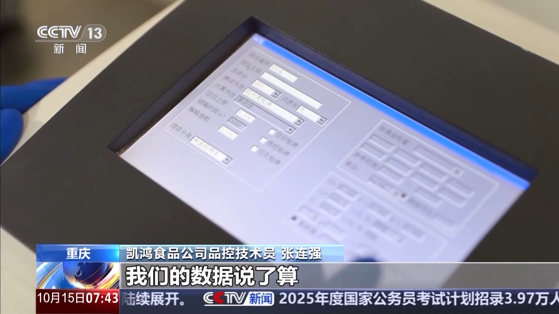 重慶凱鴻食品公司品控技術(shù)員 張連強(qiáng):像牛肉就要檢測(cè)七項(xiàng),比如說(shuō)里面的過(guò)氧化脂,精確到了每百克不得超過(guò)0.25克,非常嚴(yán)格。產(chǎn)品好不好,能不能走向市場(chǎng),老板說(shuō)了不算,我們的數(shù)據(jù)說(shuō)了算。