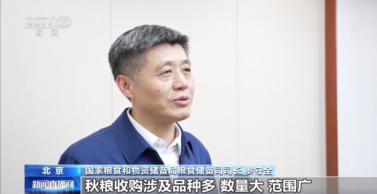 國(guó)家糧食和物資儲(chǔ)備局糧食儲(chǔ)備司司長(zhǎng) 羅守全:目前,南方中晚稻已經(jīng)上市,東北和華北秋糧還有半個(gè)月左右也將集中上市。目前,主產(chǎn)區(qū)準(zhǔn)備收購(gòu)倉(cāng)容超過(guò)3億噸,能夠滿足農(nóng)民售糧需求。
