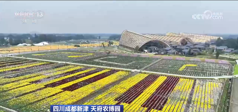 四川成都新津天府農(nóng)博園里,紫黑、紫紅、金黃三種特種稻種和大田水稻一起組成多彩圖案和造型,每畝預計產(chǎn)量躍上800斤的新高。稻田邊創(chuàng)意涌動,一杯杯稻田咖啡香醇四溢,一朵朵葵花正在向陽綻放,悠然演奏著喜悅豐收的“大地樂章”。