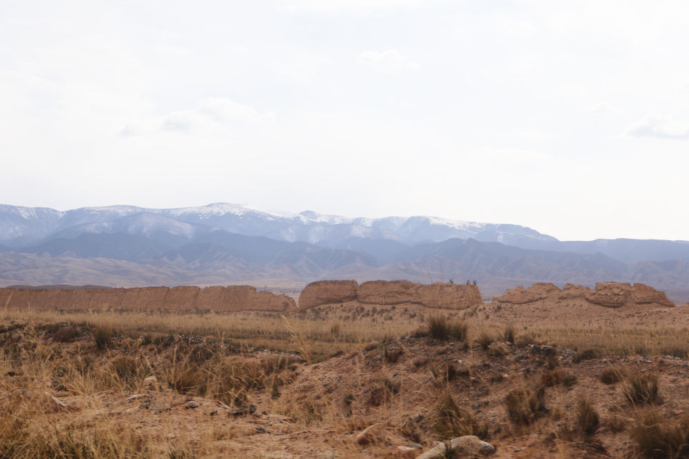 16日,焉支山下的漢明長城遺址。新華社記者 劉雅萱 攝