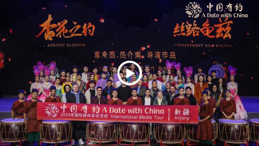 10月22日,“中國有約·相約新疆”2024年國際媒體采訪團走進(jìn)庫車大馕城。2023年大馕城中廳進(jìn)行升級改造,修建了大型演藝舞臺,打造一臺以古代龜茲樂舞和當(dāng)下庫車非遺相融合的樂舞詩劇目。國際媒體采訪團成員在欣賞了精彩的表演之后,走上舞臺與演員們一起上演最炫民族風(fēng),感受著千年古城人民的熱情與友好。