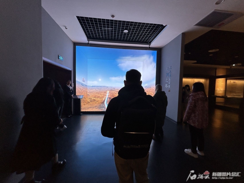 “絲綢之路代入式互動(dòng)體驗(yàn)”吸引著大家的目光。 石榴云/新疆日?qǐng)?bào)記者張小宓攝