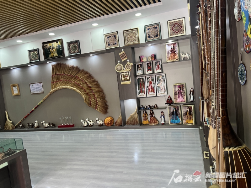 疏附縣托克扎克鎮(zhèn)阿亞格曼干村村委會里的手工藝品展示館,陳列著各種手工藝品。石榴云/新疆日報(bào)記者 拍熱扎提·阿不都攝
