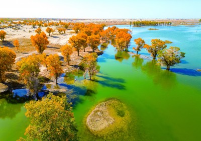 站在高處放眼望去,大片的胡楊林仿佛被溫柔的霞光所籠罩,明黃色的胡楊葉如同滿天繁星,在水面上輕輕搖曳。走進(jìn)胡楊林深處,可見漢唐烽燧、太陽(yáng)墓、祭臺(tái),每一處文化遺存都透著原始與神秘,仿佛將一個(gè)個(gè)古老的傳說(shuō)向人娓娓道來(lái)。
