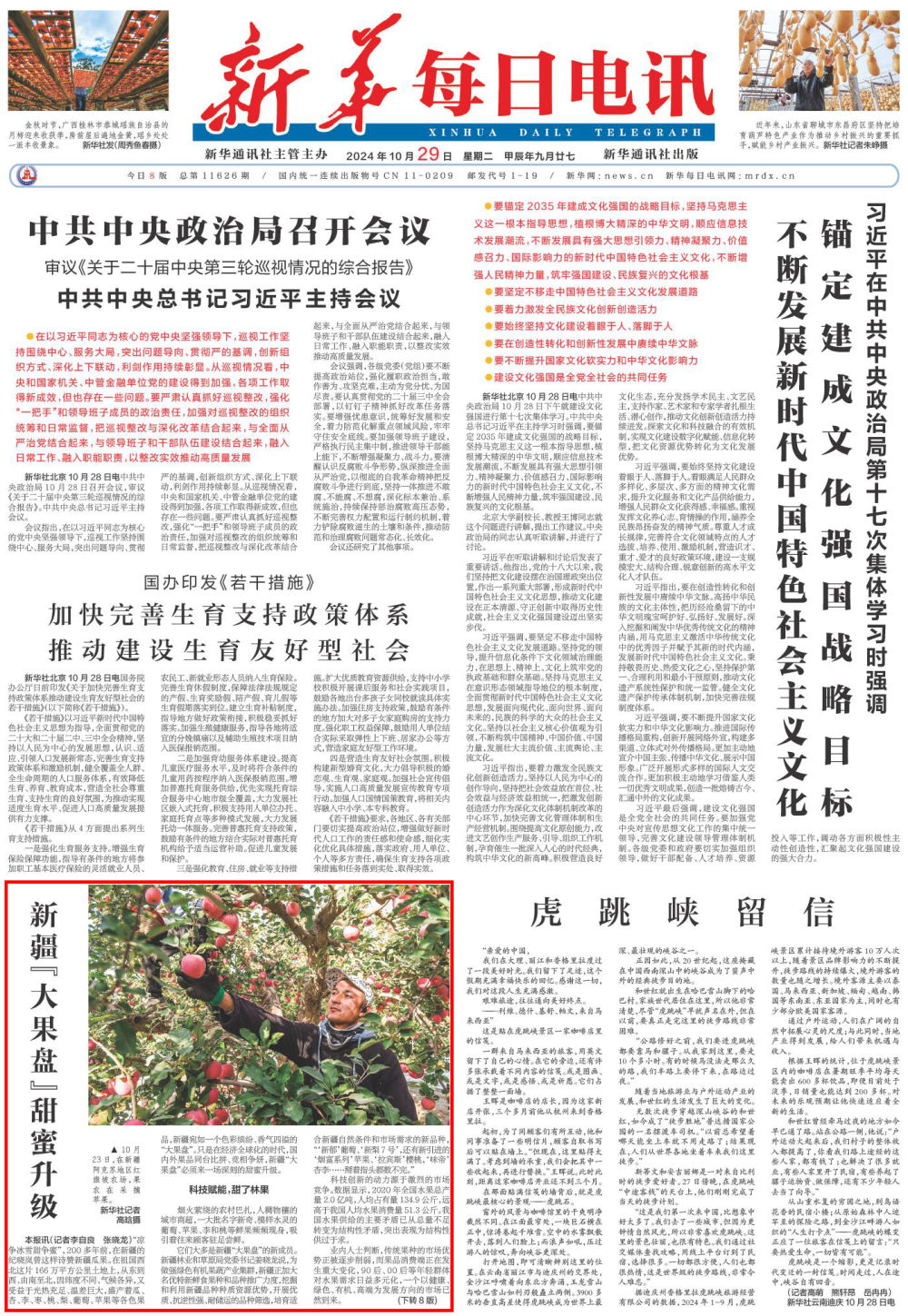 它們大多是新疆“大果盤”的新成員。新疆林業(yè)和草原局黨委書記姜曉龍說,為做強綠色有機果蔬產(chǎn)業(yè)集群,新疆正加大名優(yōu)特新鮮食果種和品種推廣力度,挖掘和利用新疆品種種質(zhì)資源優(yōu)勢,開展優(yōu)質(zhì)、抗逆性強、耐儲運的品種篩選,培育適合新疆自然條件和市場需求的新品種,“‘新郁’葡萄、‘新梨7號’,還有新引進的‘煙富系列’蘋果、‘拉賓斯’櫻桃,‘味帝’杏李……掰著指頭都數(shù)不完?!?/p>