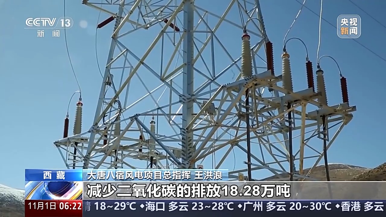 大唐八宿風(fēng)電項(xiàng)目總指揮 王洪浪:項(xiàng)目投產(chǎn)后每年可以新增清潔電力2.23億度以上,可節(jié)約標(biāo)(準(zhǔn))煤約7.31萬(wàn)噸,減少二氧化碳的排放18.28萬(wàn)噸??梢詽M足23萬(wàn)人全年生活用電。在保障人民群眾冬季供暖和電力安全供應(yīng)的同時(shí),可有效地改善西藏自治區(qū)的能源結(jié)構(gòu)。