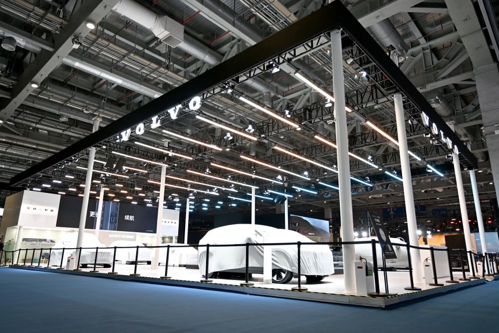 這是11月4日拍攝的第七屆進博會汽車展區(qū)一景。