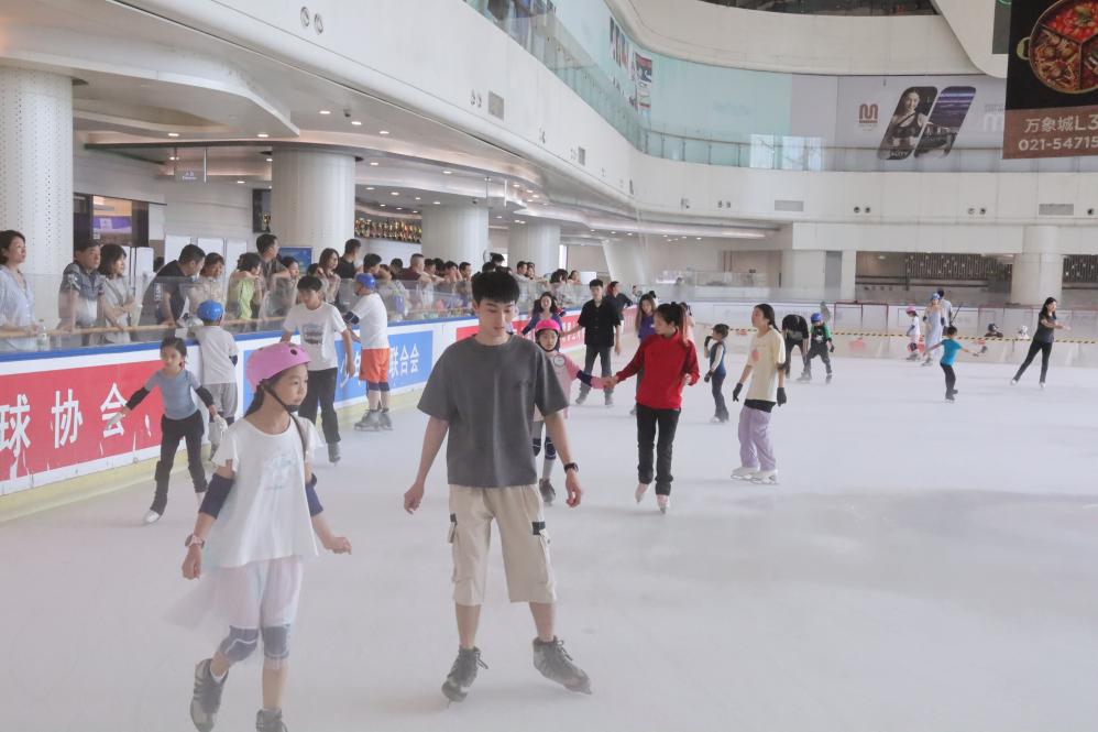 今年7月26日,人們?cè)谌A潤上海萬象城冰場參加滑冰等冰上活動(dòng)。(岳遠(yuǎn) 攝)