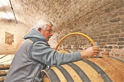 在酒莊的地下酒窖內(nèi),一排排橡木桶有序排放,員工正在檢查環(huán)境溫度和濕度。酒莊首席釀酒師王俐介紹,弗魯什卡山產(chǎn)出的葡萄酒口感很接近中國消費者的喜好。酒莊特意選擇了梅洛等葡萄品種,并采用獨特加工工藝,使葡萄酒的風(fēng)味更加柔和細(xì)膩。她拿出一款“奎特梅洛”紅葡萄酒介紹:“這是專門針對中國市場推出的產(chǎn)品,會在橡木桶中存放18個月。這款產(chǎn)品是酒莊在中國市場的暢銷款?!?/p>
