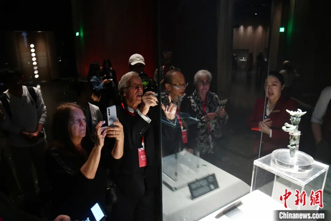 11月4日,安杰伊·尼溫斯基(左二)在成都金沙遺址博物館參訪。中新社記者 張浪 攝