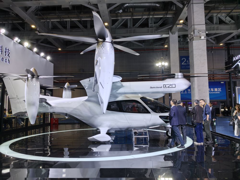 時(shí)的科技帶來的E20電動(dòng)飛行器展品。新華社記者 宋佳 攝
