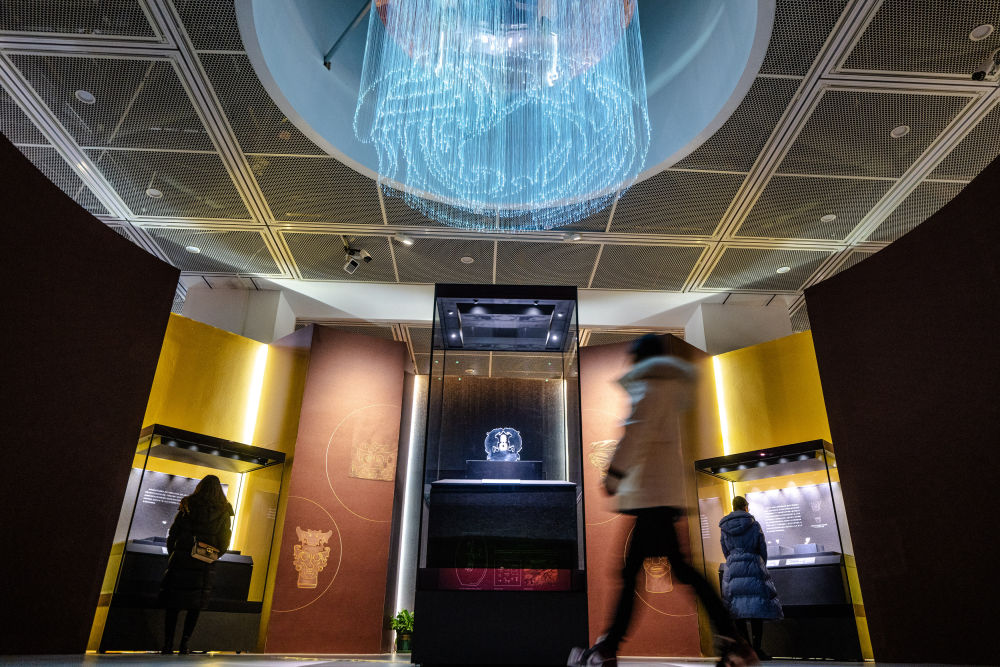 2024年2月1日,游客在位于湖北省武漢市的盤龍城遺址博物院參觀游覽。新華社記者 肖藝九 攝