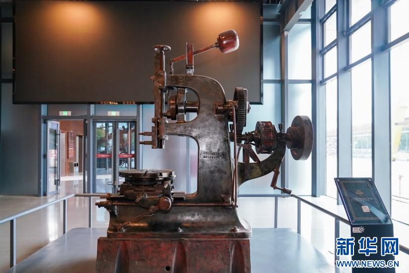 博物館大廳內(nèi)展示的這臺老機(jī)床,是法國米盧斯杜克芒公司于1867年制造的插床,為國家一級文物。