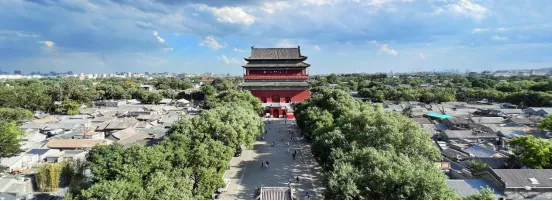 《元一統(tǒng)志》載:“至元九年(1272年)二月,改號(hào)大都,遷居民以實(shí)之,建鐘鼓樓于城中?!比绱怂銇?lái),鐘鼓樓修建距今已有七百五十余年。始于暮鼓、止于晨鐘的報(bào)時(shí),傳達(dá)著晝行將盡、夜禁將啟的信號(hào),規(guī)范著文武百官、平民百姓的作息。作為傳統(tǒng)城市管理方式的實(shí)物見(jiàn)證,鐘鼓樓承載了深厚的歷史底蘊(yùn)與豐富的文化內(nèi)涵。
