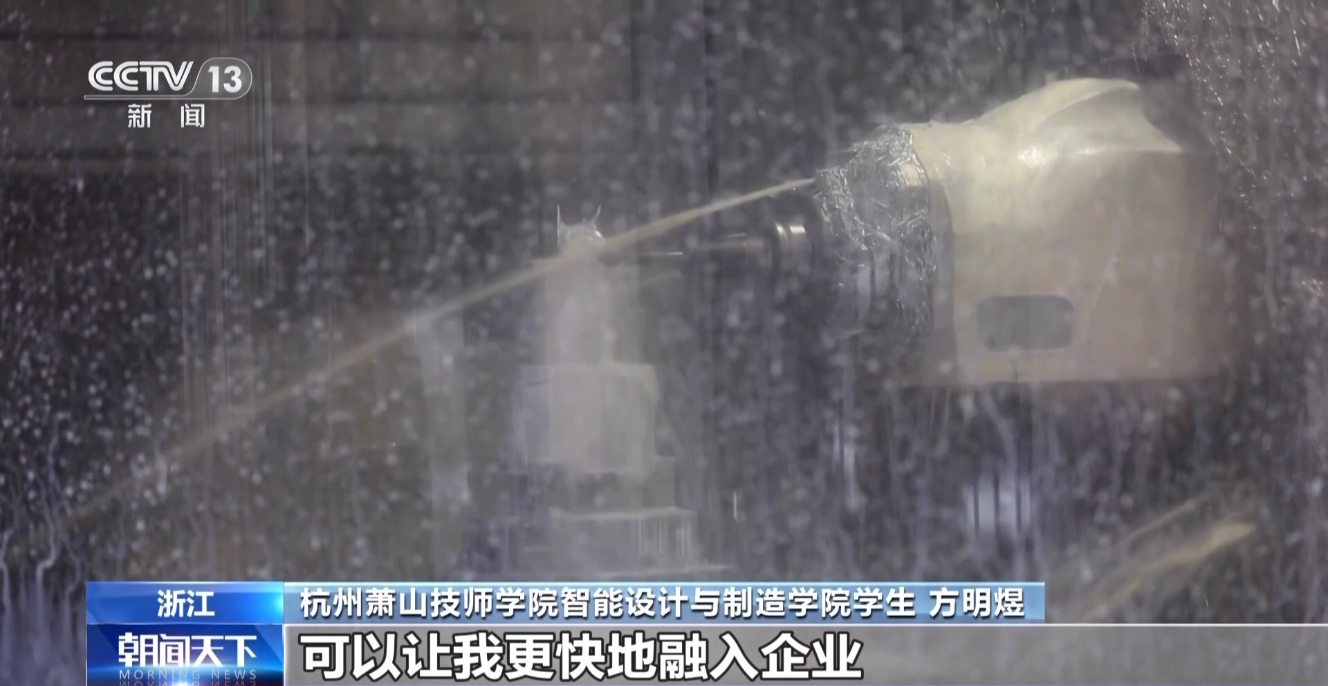 杭州蕭山技師學(xué)院智能設(shè)計與制造學(xué)院學(xué)生 方明煜:比如五軸加工中心以及智能產(chǎn)線、數(shù)字孿生等技術(shù),可以讓我更快融入企業(yè),更快上手。