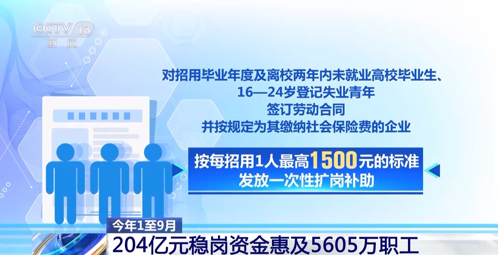 對招用畢業(yè)年度及離校兩年內(nèi)未就業(yè)高校畢業(yè)生、16到24歲登記失業(yè)青年,簽訂勞動合同,并按規(guī)定為其繳納社會保險費(fèi)的企業(yè),按每招用1人最高1500元的標(biāo)準(zhǔn)發(fā)放一次性擴(kuò)崗補(bǔ)助,今年以來已向17萬戶企業(yè)發(fā)放9億元,惠及62萬高校畢業(yè)生等青年群體。