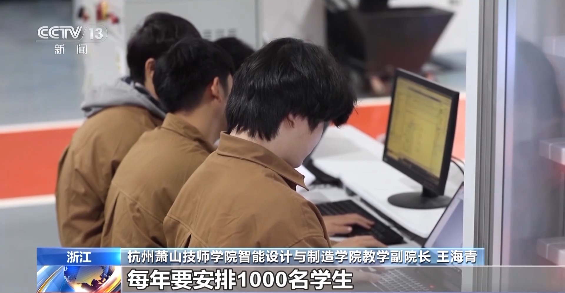 在杭州蕭山技師學(xué)院的多軸加工教學(xué)工作站里,學(xué)生們正在進(jìn)行實(shí)操訓(xùn)練。體積最大的這臺叫五軸加工中心,專門用于加工航天裝備、精密器械的復(fù)雜曲面。一些學(xué)生告訴記者,像這樣的大家伙,這兩年學(xué)校沒少添置。