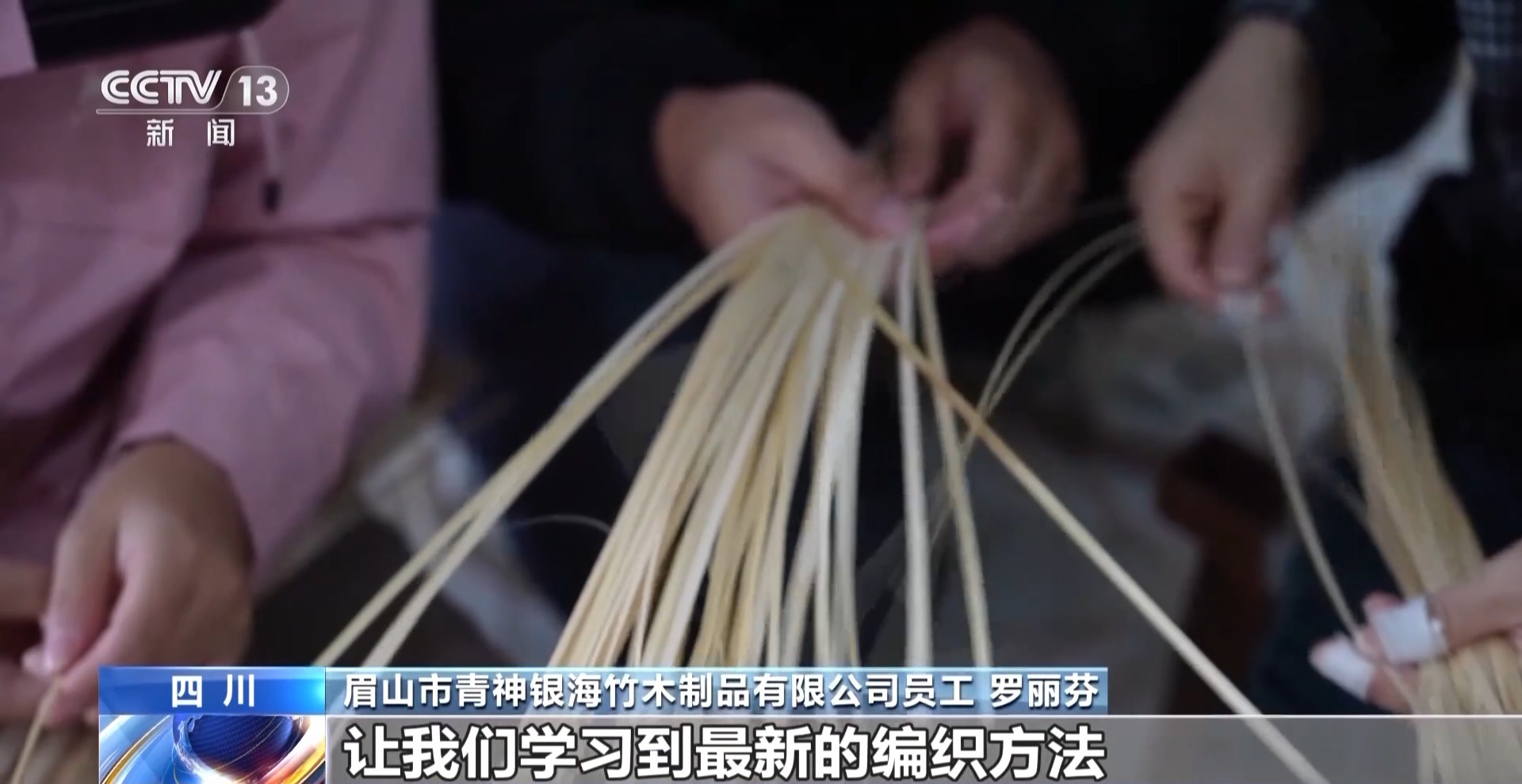 四川省青神銀海竹木制品有限公司員工 羅麗芬:收入每個月能掙4000多元,而且我們還有免費(fèi)的培訓(xùn),讓我們學(xué)習(xí)到最新的編織方法,比如人字形編織法、菊花形編織,都有不一樣的技巧。