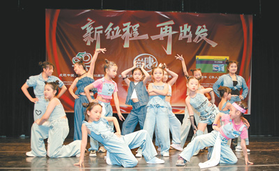 圖為唐韻藝術(shù)團(tuán)成立25周年匯報演出中,少兒爵士舞班在表演節(jié)目。受訪者供圖