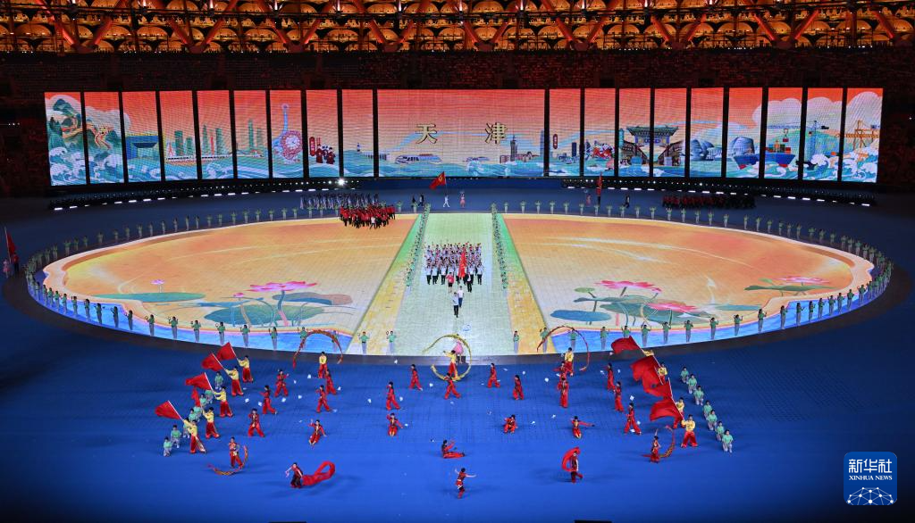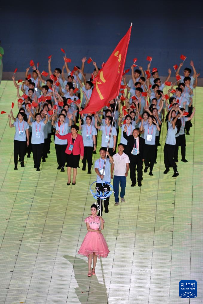 11月22日,天津市代表團(tuán)在開幕式上入場(chǎng)。